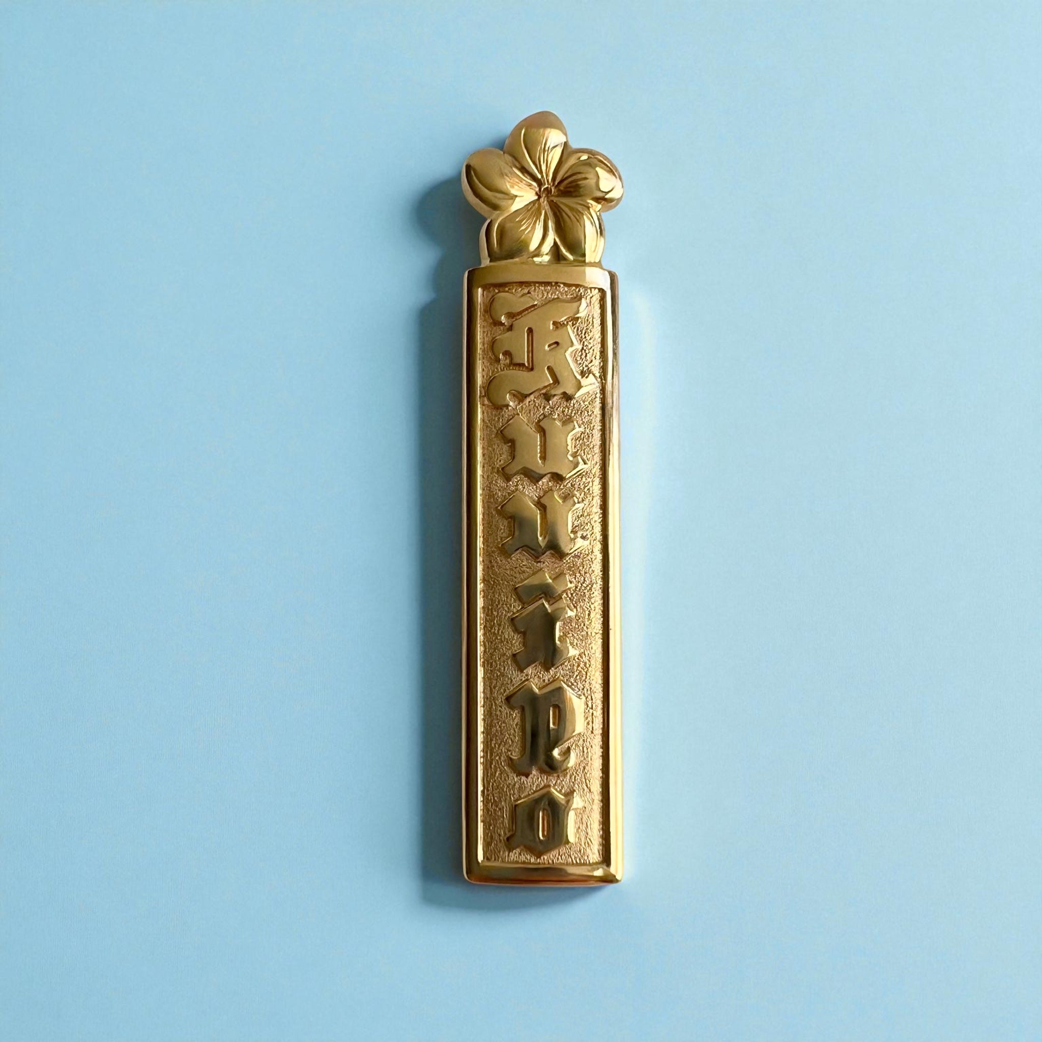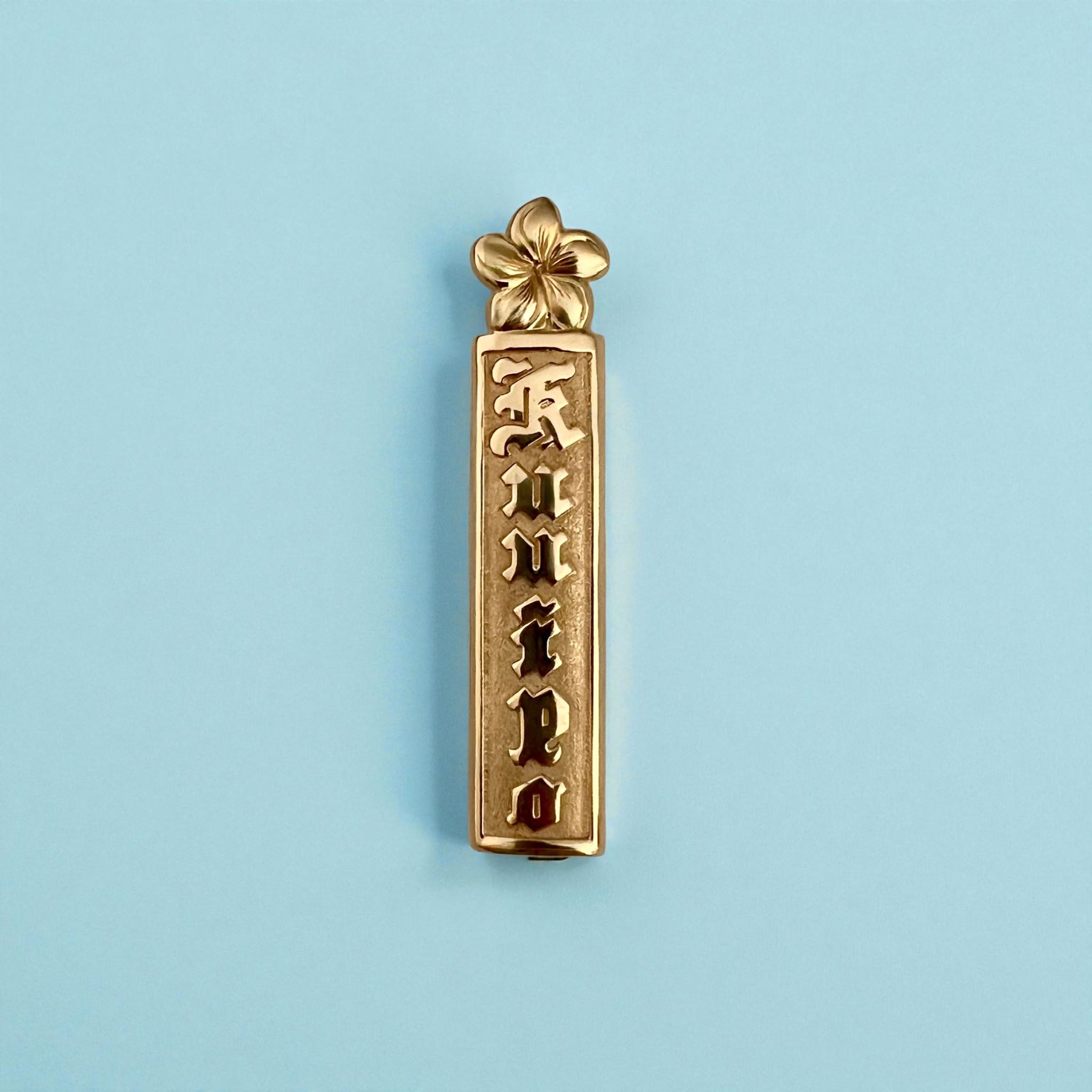 • Load image into Gallery viewer, Flower on Top Raised "Kuuipo" 10mm x 1 1/2'' Pendant in 14K Yellow Gold