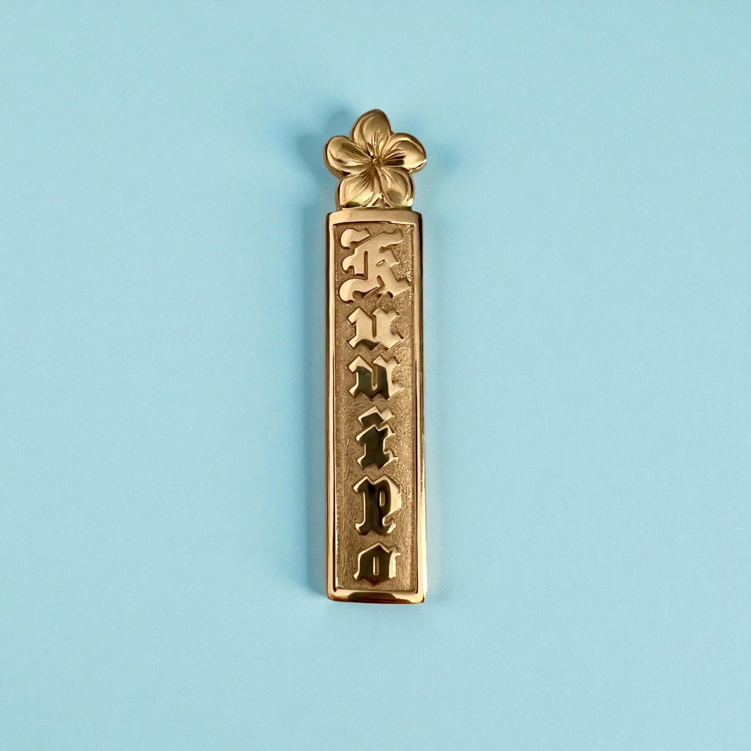 Flower on Top Raised "Kuuipo" 10mm x 1 1/2'' Pendant in 14K Yellow Gold