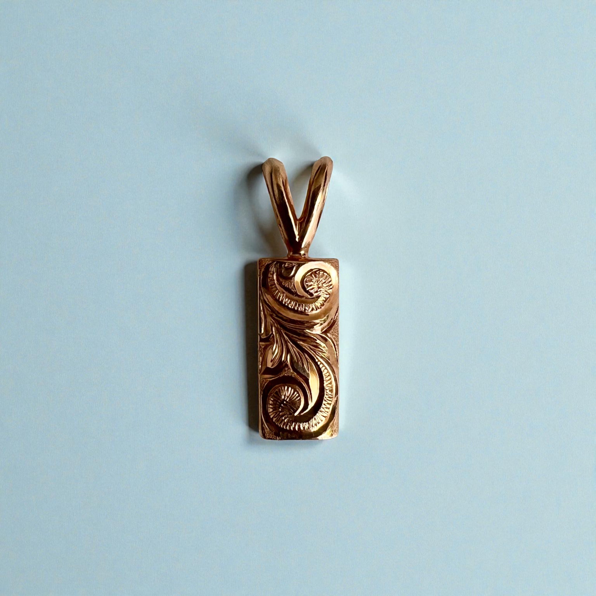 Engraved Hawaiian pendant with Old English design. Approximately 6mm x 1/2".