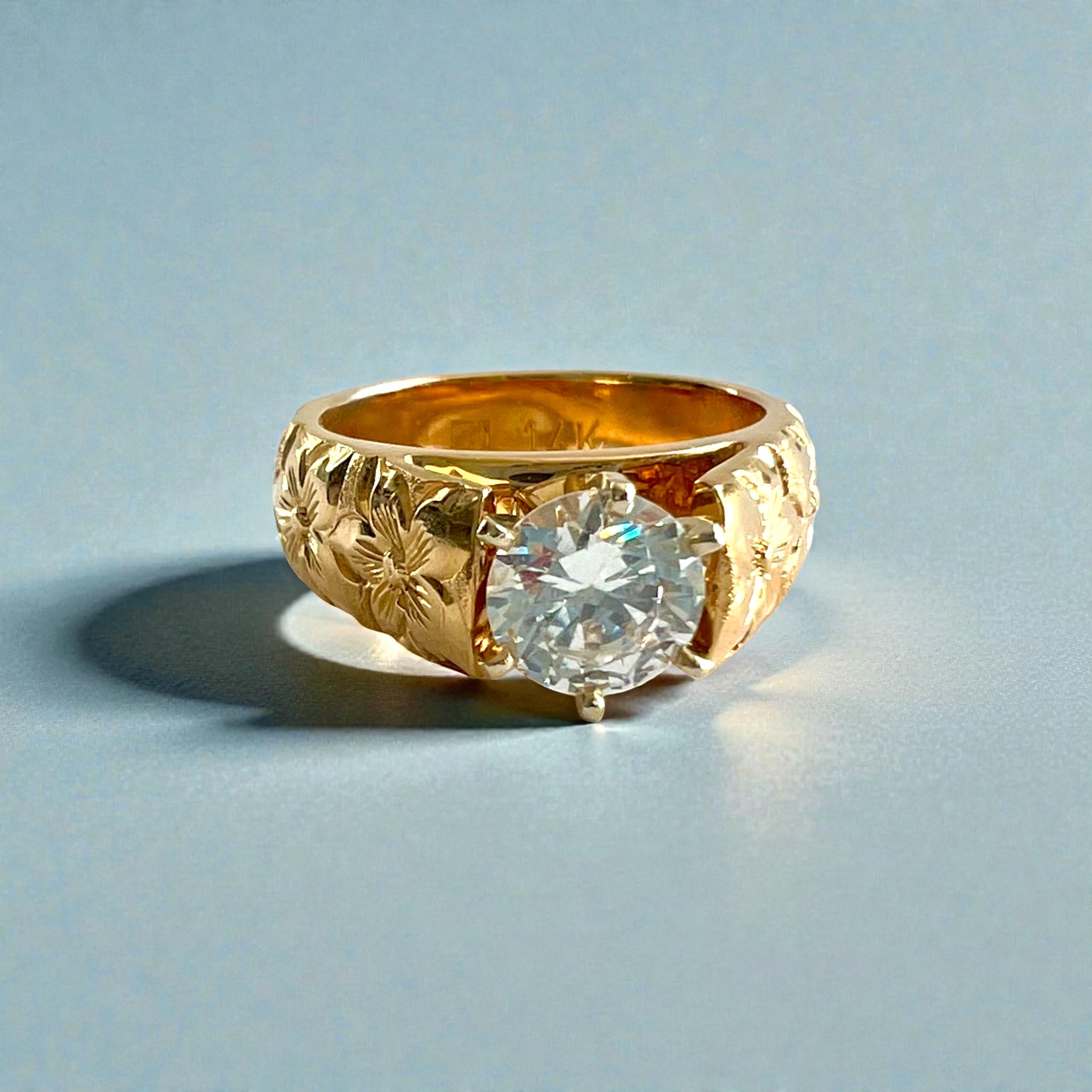 Hibiscus 6mm French Mount Solitaire Ring w/ 6.4mm Cubic Zirconia in 14K Yellow Gold