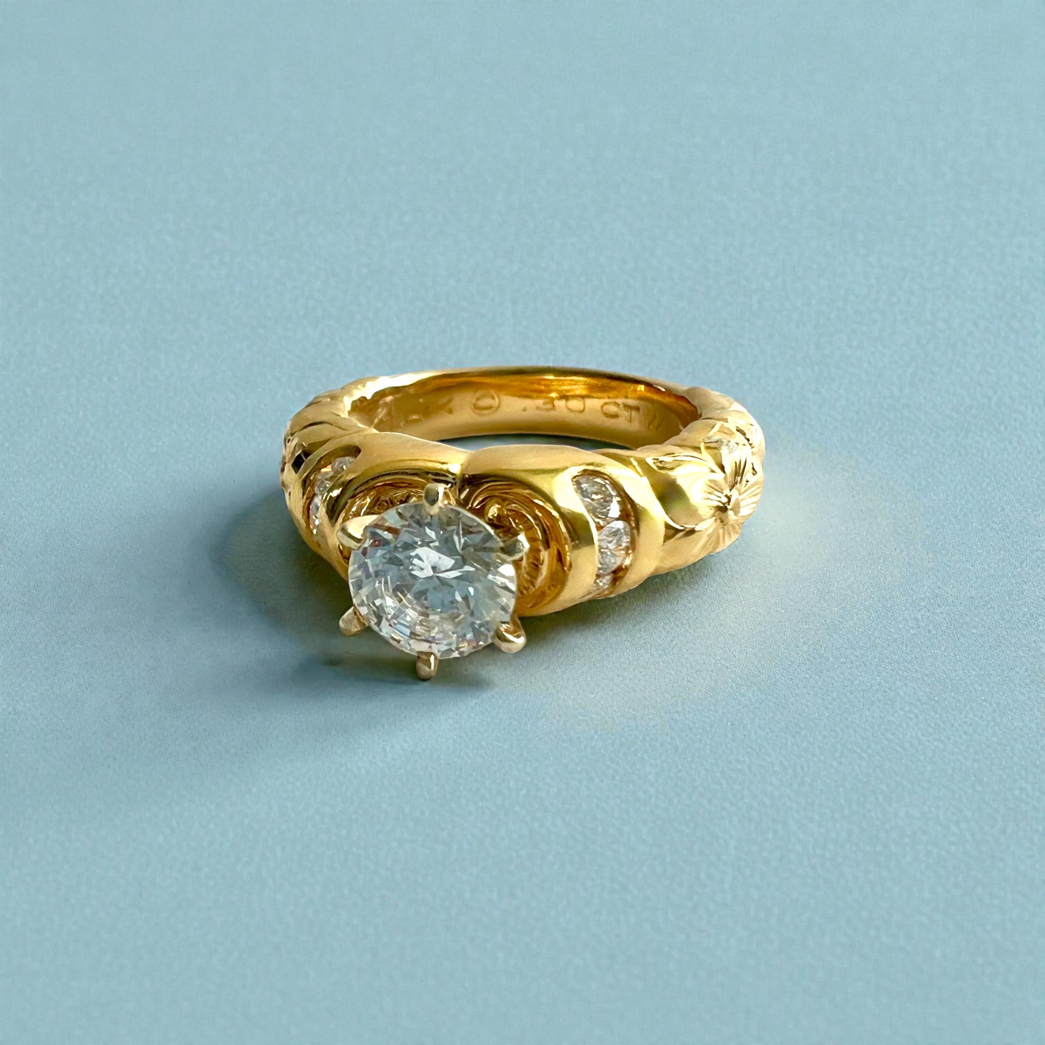 Kaimana Scalloped Hibiscus Ring w/ 6.4mm Cubic Zirconia & Diamonds in 14K Yellow Gold