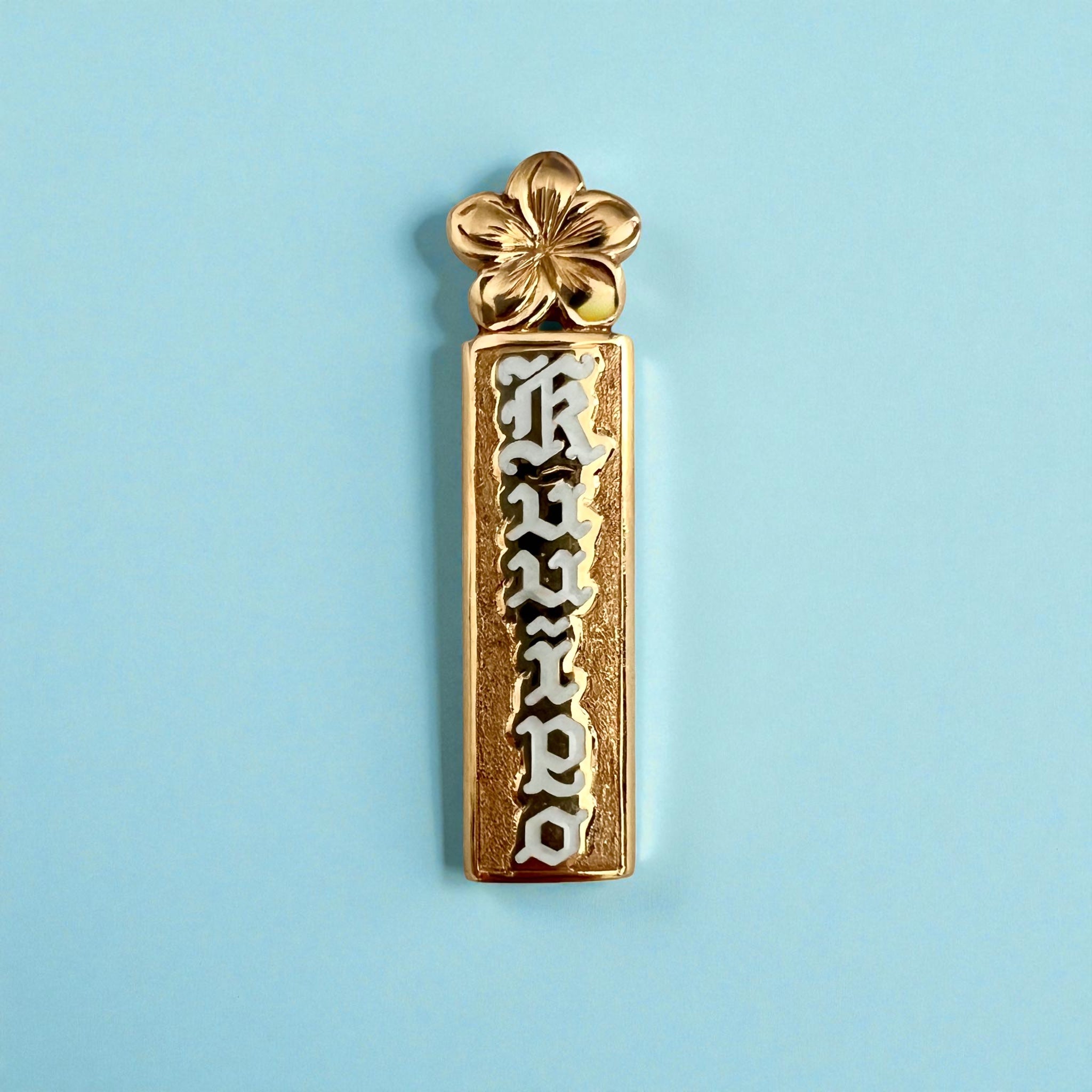 Plumeria on Top "Kuuipo" 8mm x 1" Pendant in 14K Yellow Gold