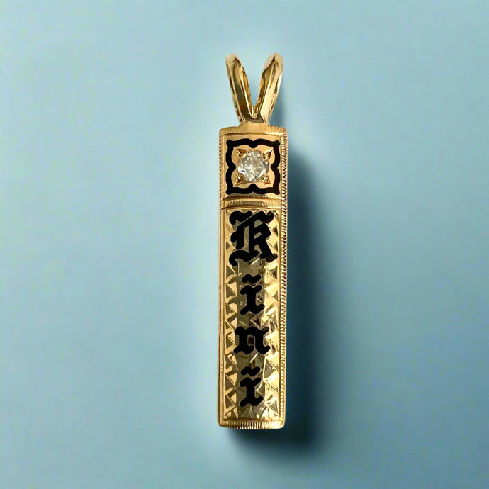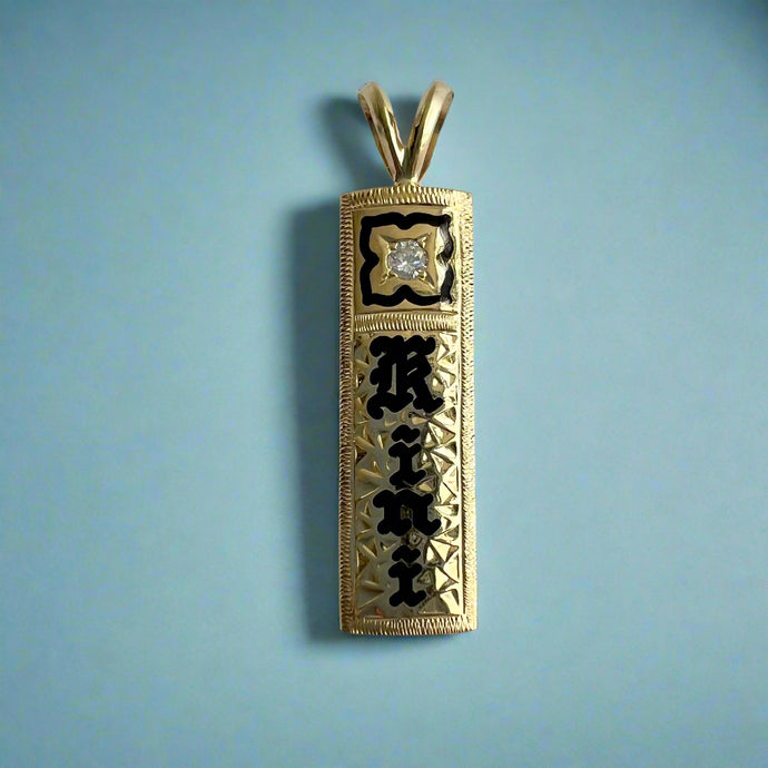 "Kini" 6mm x 1'' Abundance Pendant w/ Diamond in 14K or 18K Yellow Gold