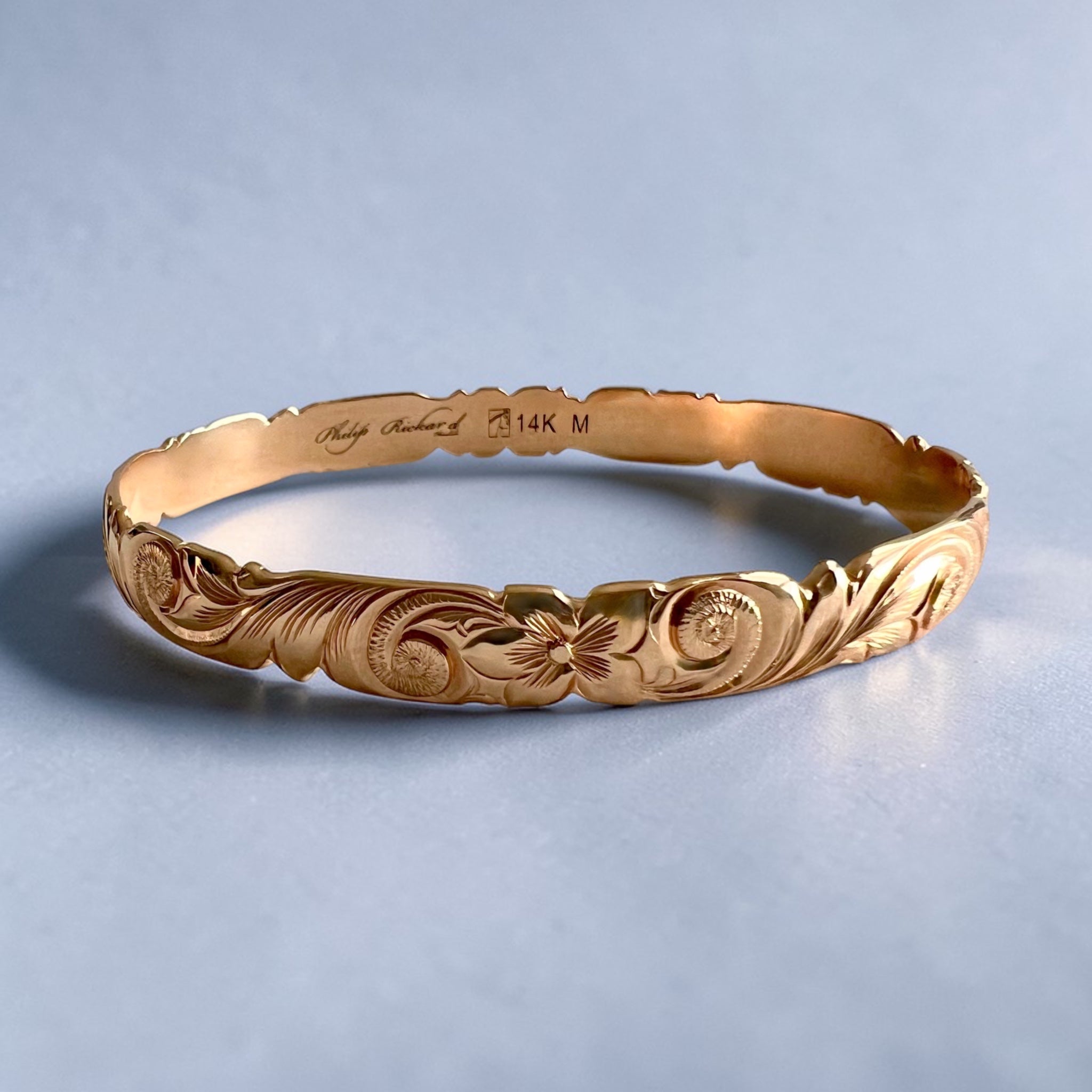Makana ("gift" in Hawaiian) Bracelets feature the same depth and quality of Philip Rickard's signature engraving, however they are lighter in weight compared to our standard bracelets. Created to be a gift.